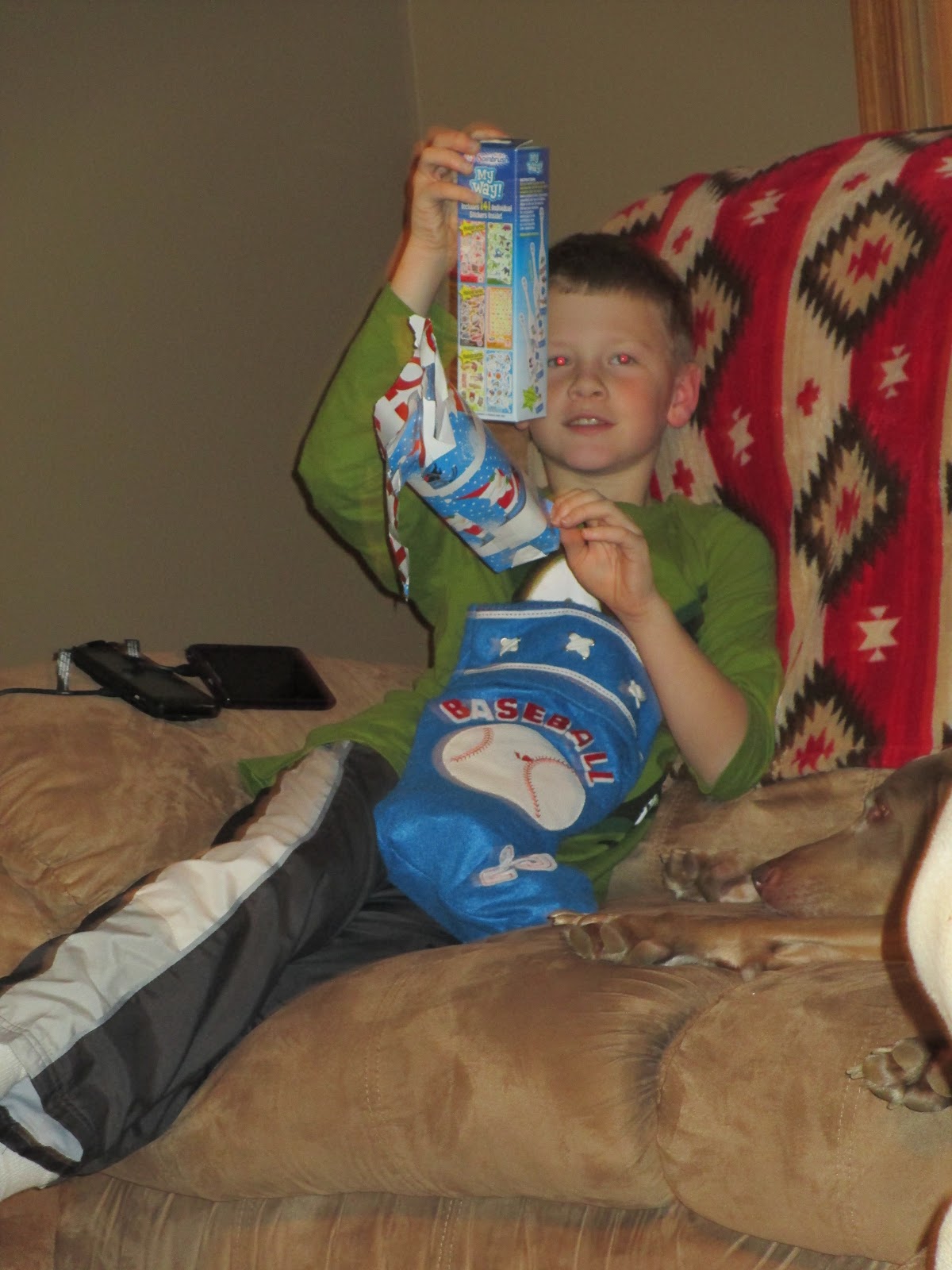 Brenna's Santa's gift was a laptop. She jumped up and down and said, "Thank you for making my dreams come true." Brody got an iPod and he was just as excited. I love seeing their excitement on Christmas morning. Brody looks pretty good considering he was getting over influenza and strep.